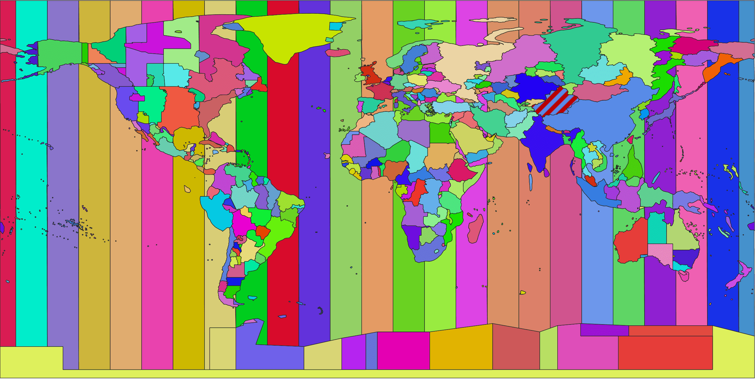 World timezone map based on IANA time zones and OpenStreetMap boundaries. Data source: timezone-boundary-builder (Evan Siroky)